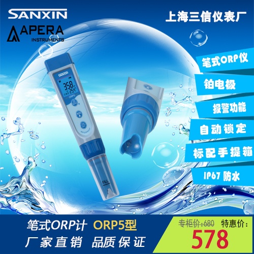 ORP5型笔式ORP测试仪,可更换电极(ORP5-E型电极),同时测量水溶液的ORP值和水溶液温度。